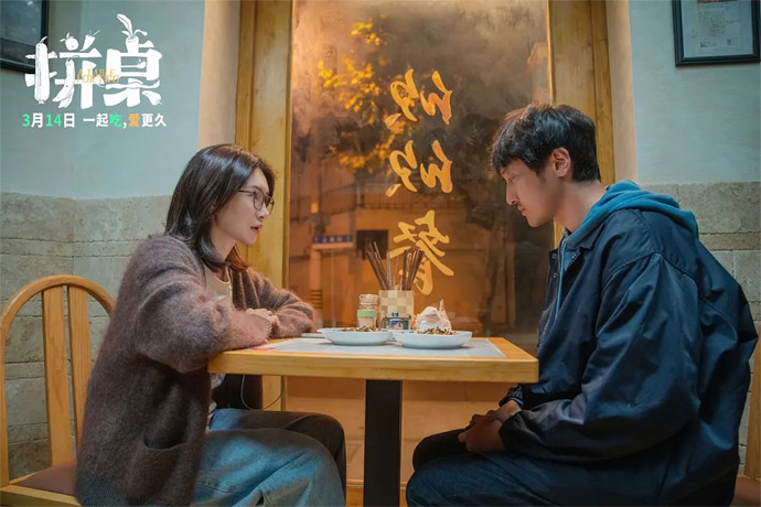 影片的核心魅力,在于对当代都市社交形态的精准捕捉。故事以市井小馆为舞台,因“拼桌”这一日常行为,让两个陌生人自然相遇。程序员陆拾谷扛着高强度工作压力,家庭的变故让他性格内敛、不善交际;图书编辑张嘉怡困于工作瓶颈,深陷情感内耗,还需兼顾职场琐碎与家庭牵挂。二人从无奈拼桌开始,在日复一日的餐桌陪伴中慢慢靠近。影片试图还原都市人的社交状态:渴望连接却畏惧亲密,需要陪伴又坚守边界,而“饭搭子”恰好成为这种矛盾的一种解法——轻量化、低负担、有温度且不越界。这种对新型社交的细腻呈现,让影片跳出了传统爱情片的套路,成为映照年轻人生活状态的一面镜子。